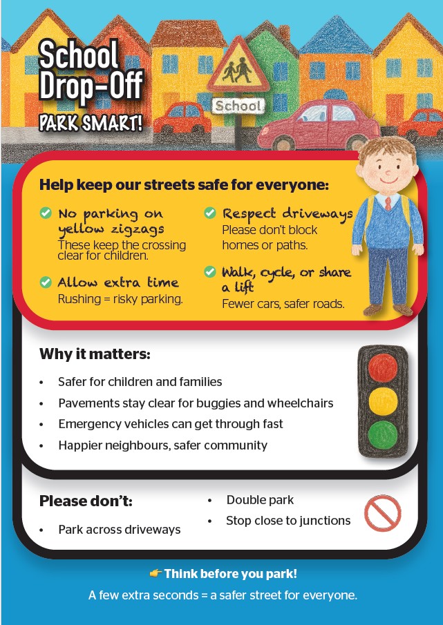 - Road Safety signs for outside of school to encourage no parking on zig zag lines.